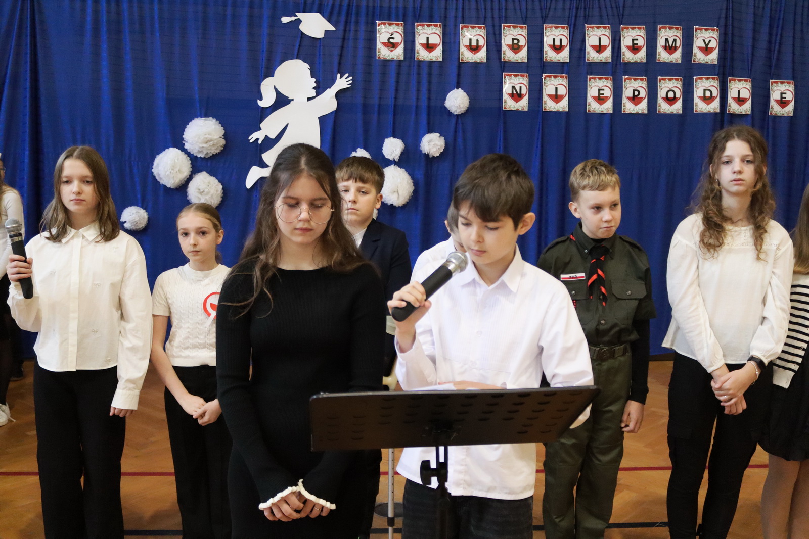 Obchodzone 11 listopada Narodowe Święto Niepodległości jest polskim świętem państwowym upamiętniającym odzyskanie przez Polskę niepodległości w 1918 roku. Uwolnienie kraju z jarzma zaborców nastąpiło po 123 latach trwania zniewolenia. Dnia 23 kwietnia 1937 r. ogłoszono specjalną ustawą, że 11 listopada będzie świętem niepodległości Polski, które miało wiązać się z datą zakończenia I wojny światowej oraz oddać hołd Józefowi Piłsudskiemu, pierwszemu Marszałkowi Polski, oraz osobie, która 11 listopada 1918 r. objęła zwierzchnictwo nad Wojskiem Polskim. Jak głosiła treść ustawy, ten dzień „jako rocznica odzyskania przez Naród Polski niepodległego bytu państwowego i jako dzień po wsze czasy związany z wielkim imieniem Józefa Piłsudskiego, zwycięskiego Wodza Naczelnego w walkach o wolność Ojczyzny – jest uroczystym Świętem Niepodległości”. Dla uczczenia tak ważnego święta 12.11.2025 r. odbyła się uroczysta akademia. Wystąpili uczniowie klasy Va i chór szkolny. Inscenizację przygotowały panie: Aneta Kowalczyk, Judyta Dołęga, Iwona Dąbrowska, Anna Iwanek . Tego dnia odbyło się ślubowanie klas pierwszych. Pan Dyrektor Wojciech Zgorzałek dokonał aktu pasowania pierwszaków. Uroczystość przygotowały panie: Marzena Wiśniewska i Urszula Sitarz. Nagłośnienie pan Sławomir Niciporuk. GALERIA ZDJĘĆ